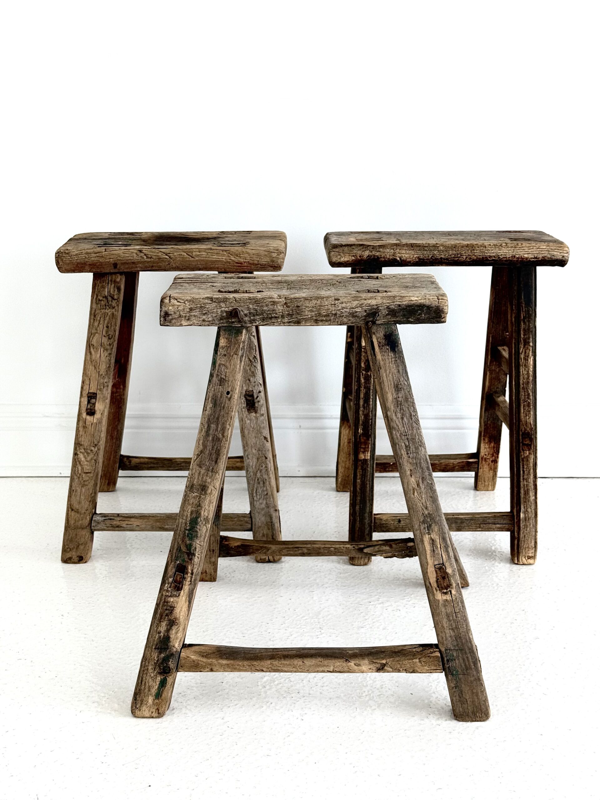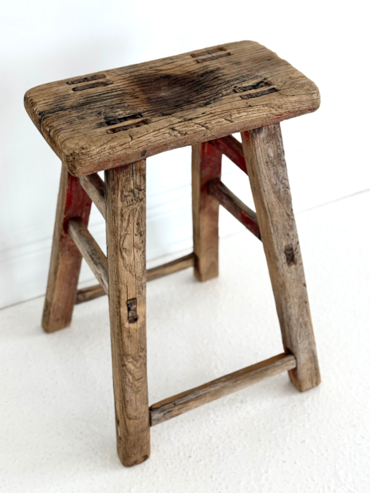 Steeped in character, this antique elm stool is a testament to time and craftsmanship. Made from solid elm with a beautifully aged patina, each piece features unique grain patterns, natural imperfections, and sturdy joinery. Each stool is hand carved and unique. Disclaimer: these are rough dimensions. Size, shape, and color may vary. Origin: Turkey