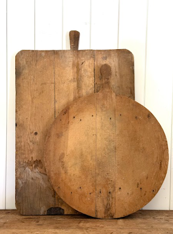Traditionally used in village kitchens across Turkey, this hand-carved bread board carries the warmth of generations past. Made from solid wood with unique grain, tool marks, and natural wear, it doubles beautifully as a rustic serving piece, charcuterie board, or decorative accent layered in your kitchen or dining space.” Every board is unique and may vary in size, shape, and color. These boards are antique and have not been tested for food safety.
