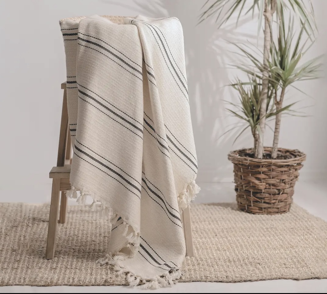 Woven from 100% Turkish cotton, this ultra-soft throw is lightweight yet cozy—perfect for layering on your sofa, bed, or favorite chair. Its breathable weave and natural texture offer year-round comfort, while the timeless design adds a relaxed, refined touch to any space.”