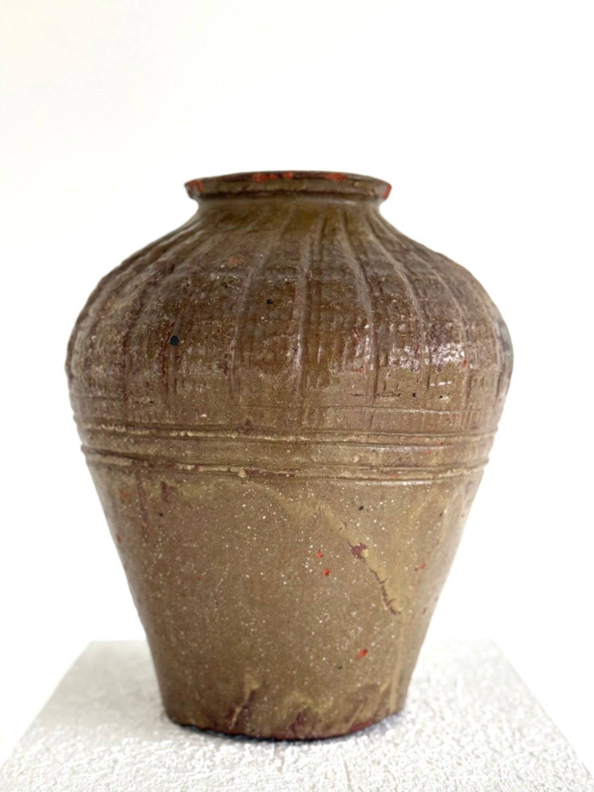 Once used for storing and serving traditional rice wine, this Turkish vessel is rich in texture and history. Handcrafted from earthenware with a naturally weathered finish, its sculptural form and subtle imperfections make it a striking decorative piece—ideal for adding old-world character and timeless warmth to modern interiors.” Each vessel has its own unique design and markings. Size, shape, and color may vary. Disclaimer: These vessels may not hold water and should not be used to store food. Origin: Turkey